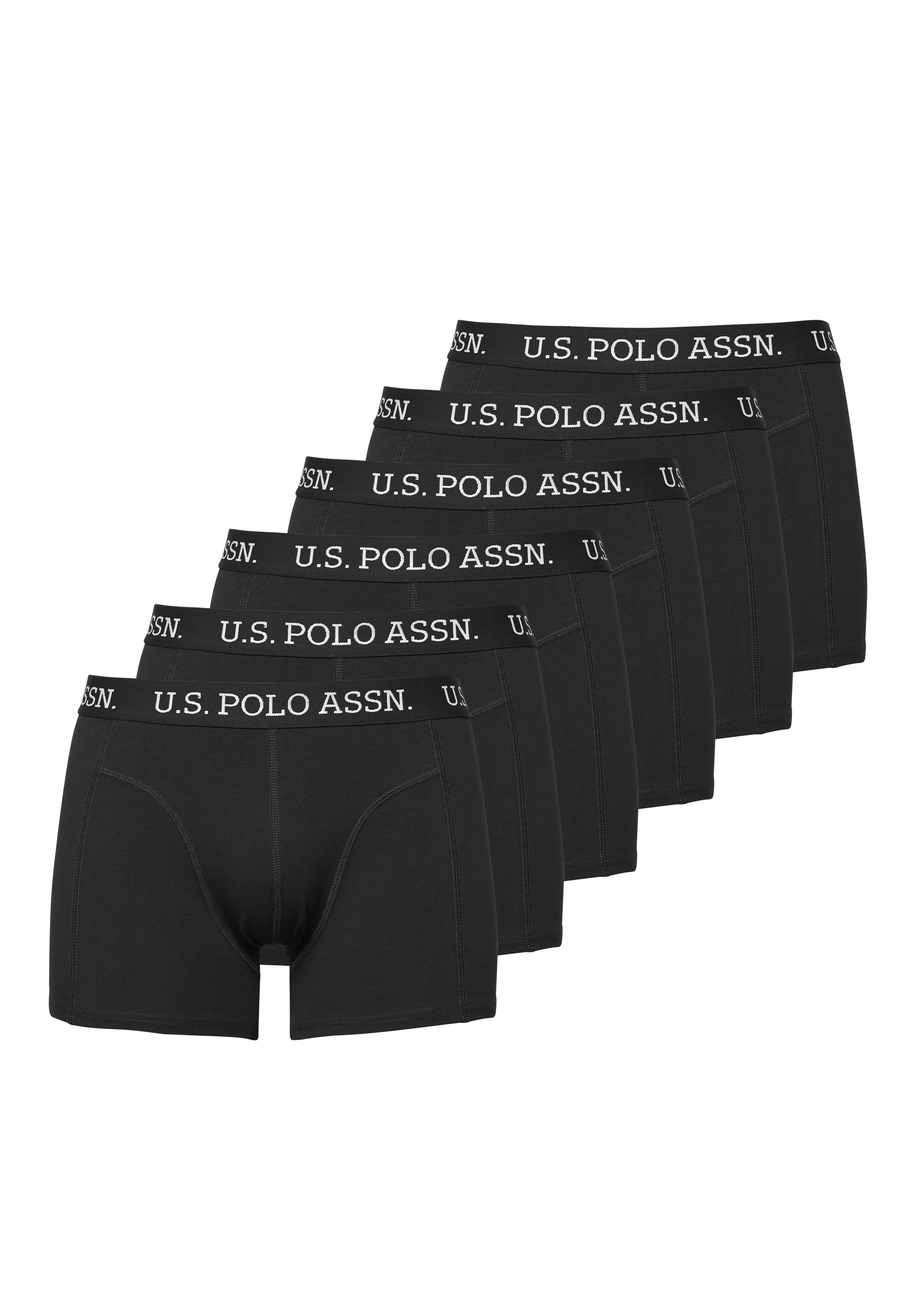 Dette settet med 6 par klassiske sorte U.S. Polo Assn. boksershorts for menn kombinerer komfort og stil. Laget av mykt og pustende stoff, har bokserne et tidløst design med en elastisk linning prydet med U.S. Polo Assn.-logoen. Perfekte for hverdagsbruk, sikrer disse bokserne komfort gjennom hele dagen.
