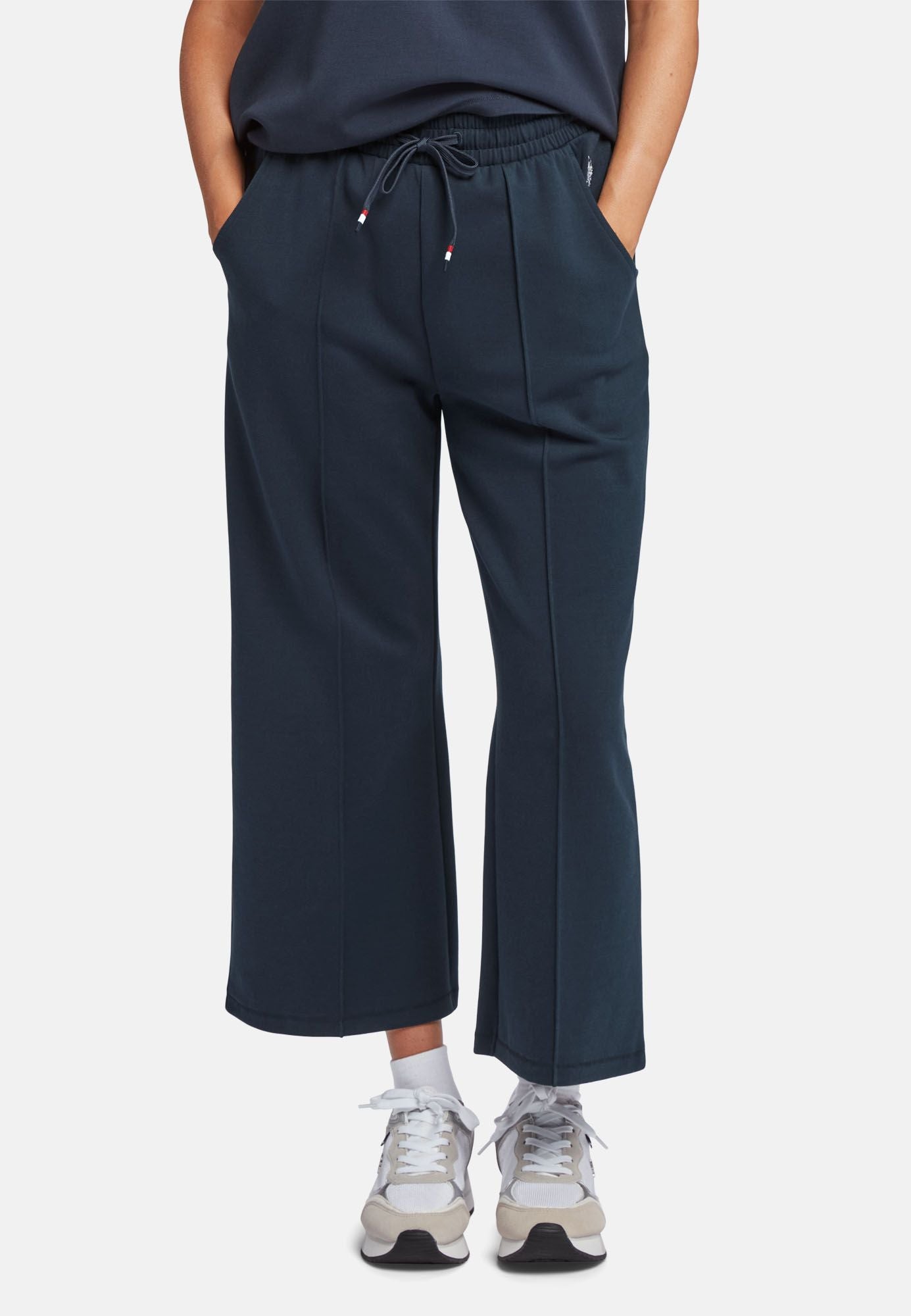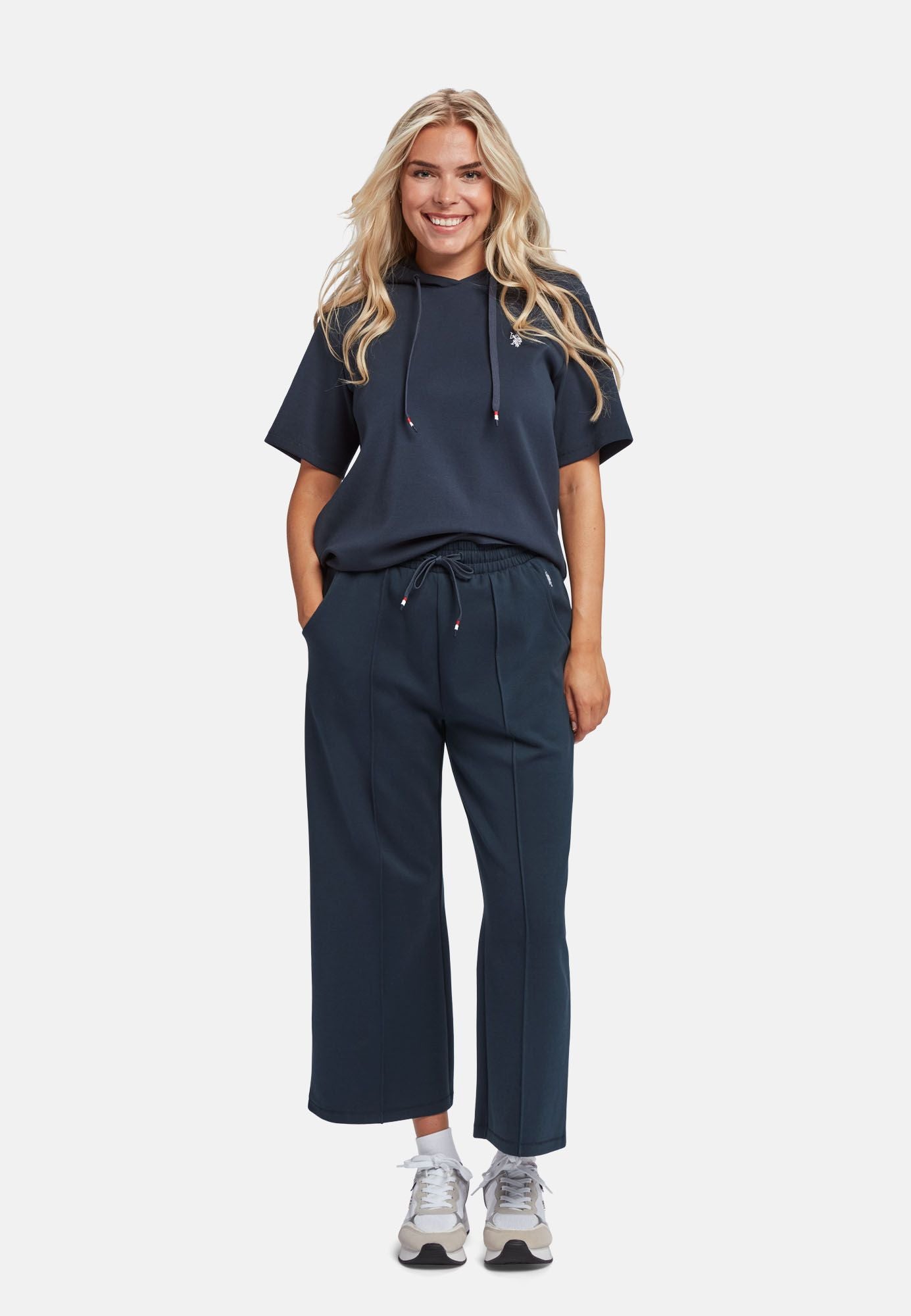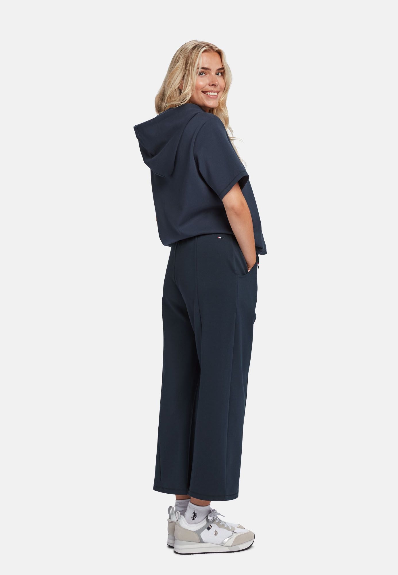 Eza er produsert i en sterk Scuba-kvalitet. Scuba brukes ofte til sportsklær da det er svært pustende, elastisk og holder formen. Eza har en avkortet ankellengde og strikk og snøring i midjen. Eza er en del av et sett, kjøp dem sammen med vår hettegenser kalt Fie. Buksen er laget av 76% BCI Cotton. BCI står for Better Cotton Initiative, som sikrer at bomullsproduksjonen er bærekraftig.