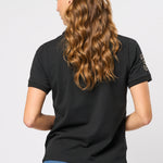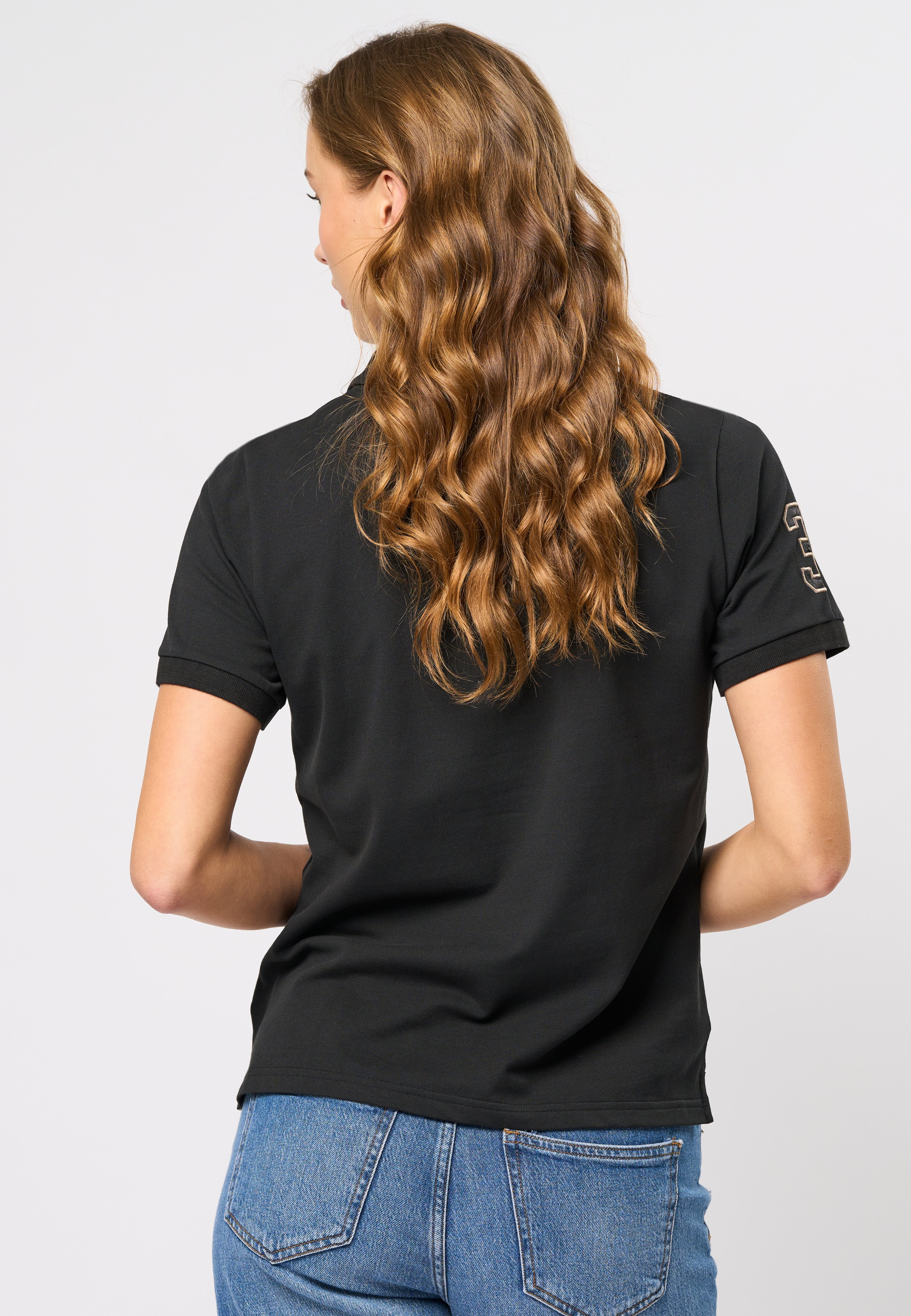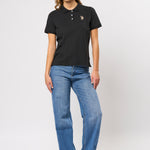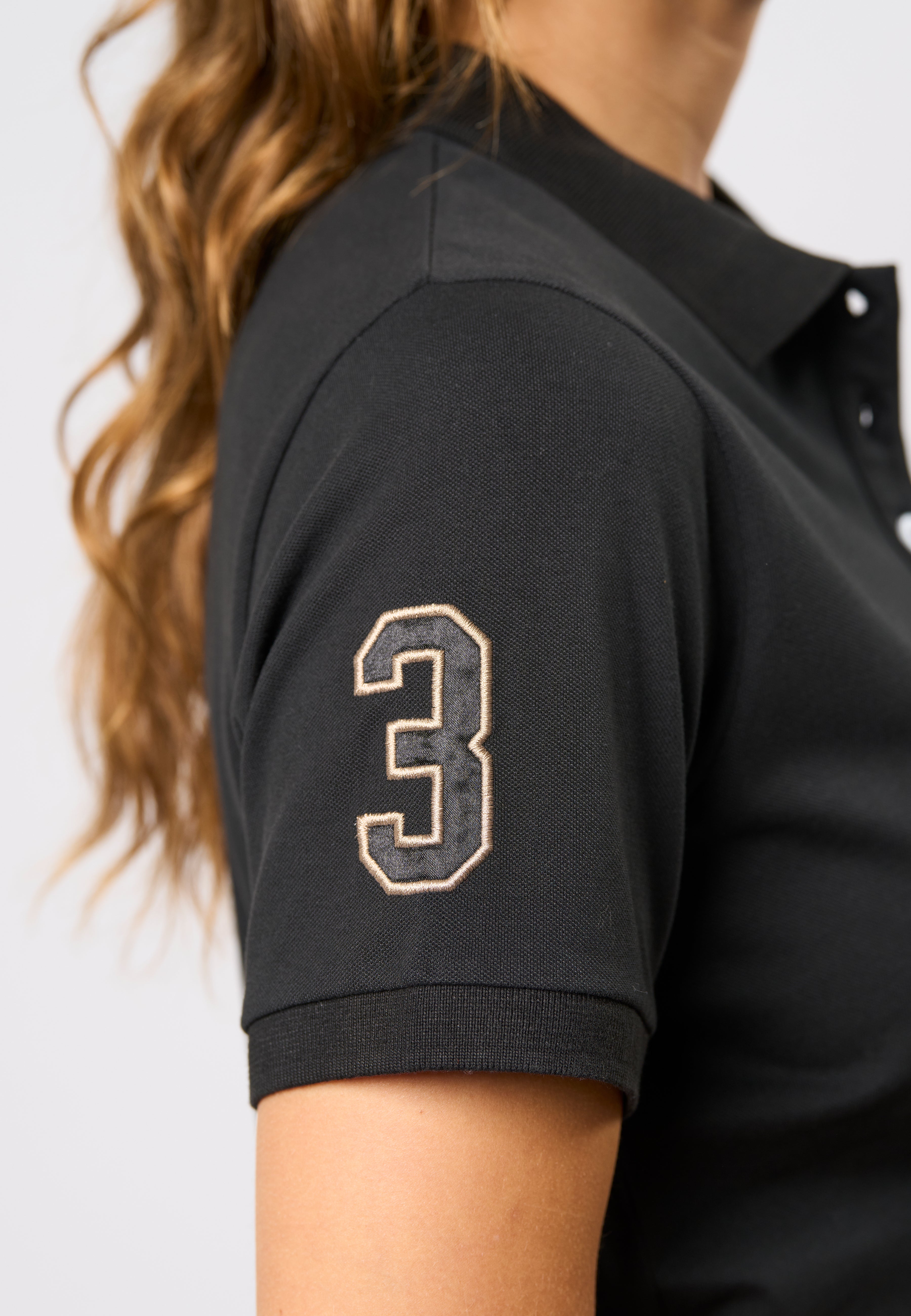 Hariet er en klassisk og sporty polo med korte ermer. Den er laget i en myk og elastisk kvalitet som gir høy komfort og et tidløst utseende. Polokragen, de korte ermene og den broderte logodetaljen på brystet gir et elegant uttrykk, mens det broderte 3-tallet på høyre erme gir et sporty og moderne preg. Style den med et av våre skjørt eller jeans for en komplett og stilig look.