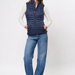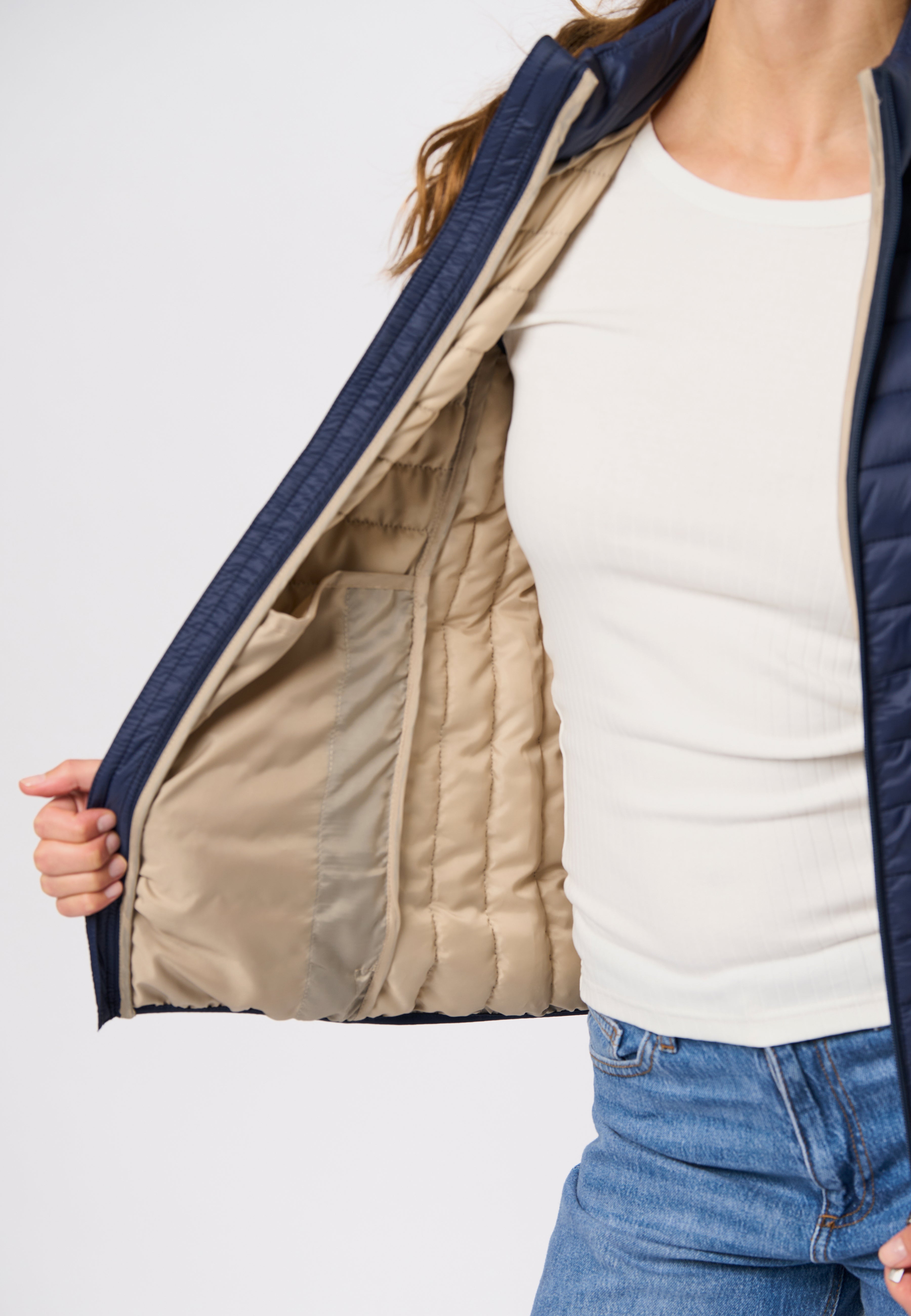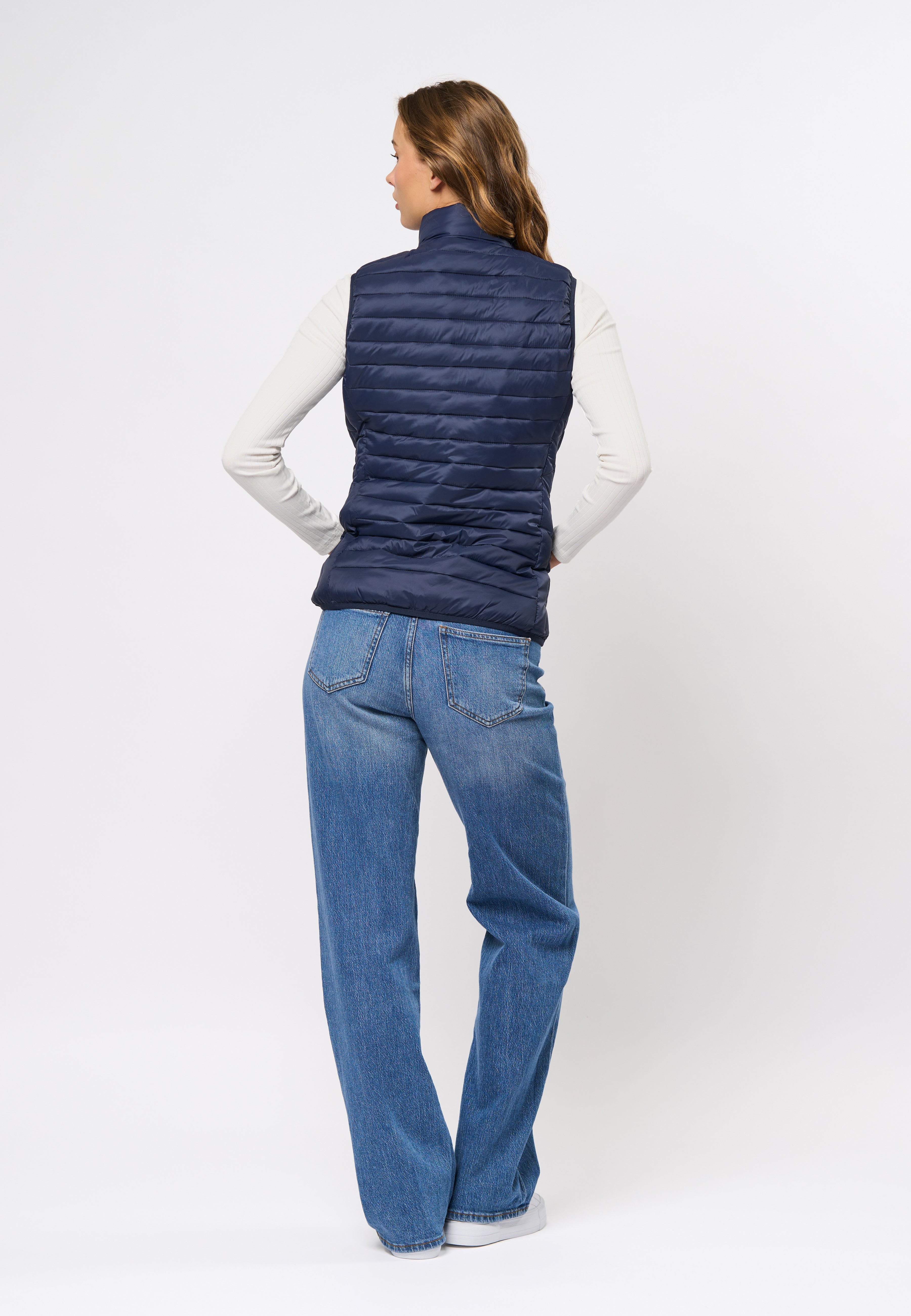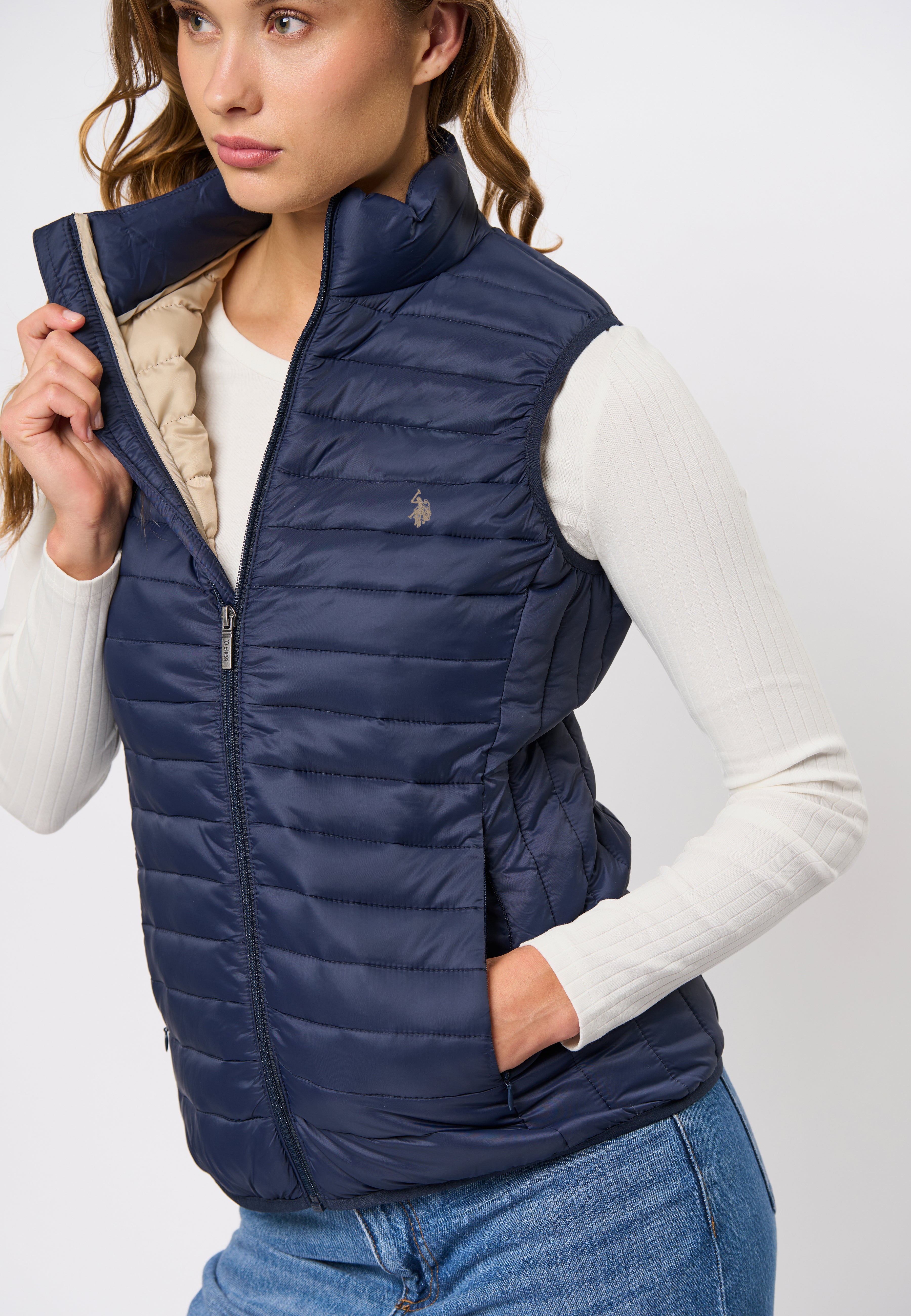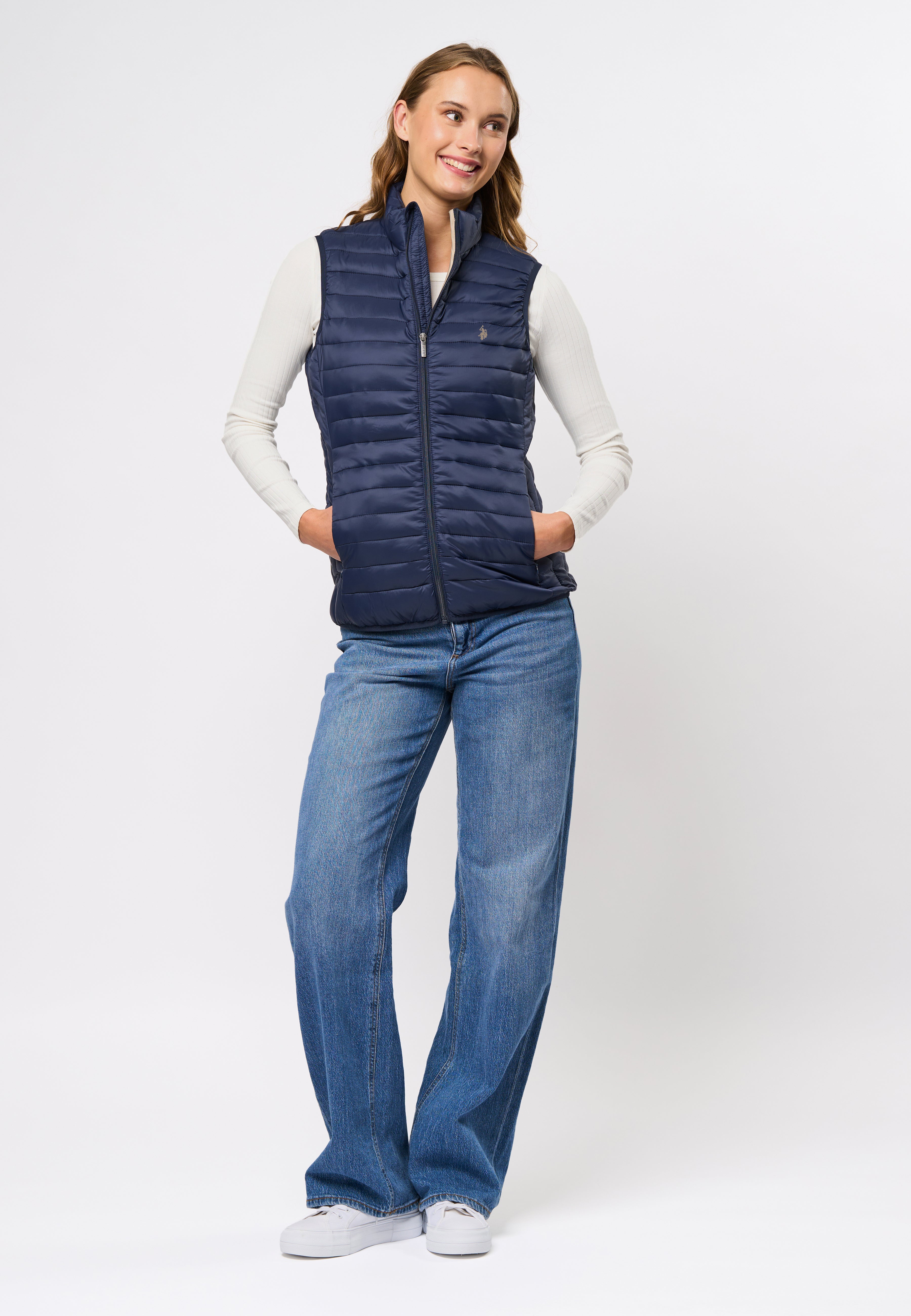 Jill er en stilig og funksjonell vest som kombinerer letthet og varme. Vesten er designet med høy krage, glidelåslukking og en lett vattert struktur som gir et moderne og sporty uttrykk. Den broderte logoen på brystet gir en elegant touch, mens det lette materialet gjør Jill til det perfekte lagvalget for de kjølige dagene.