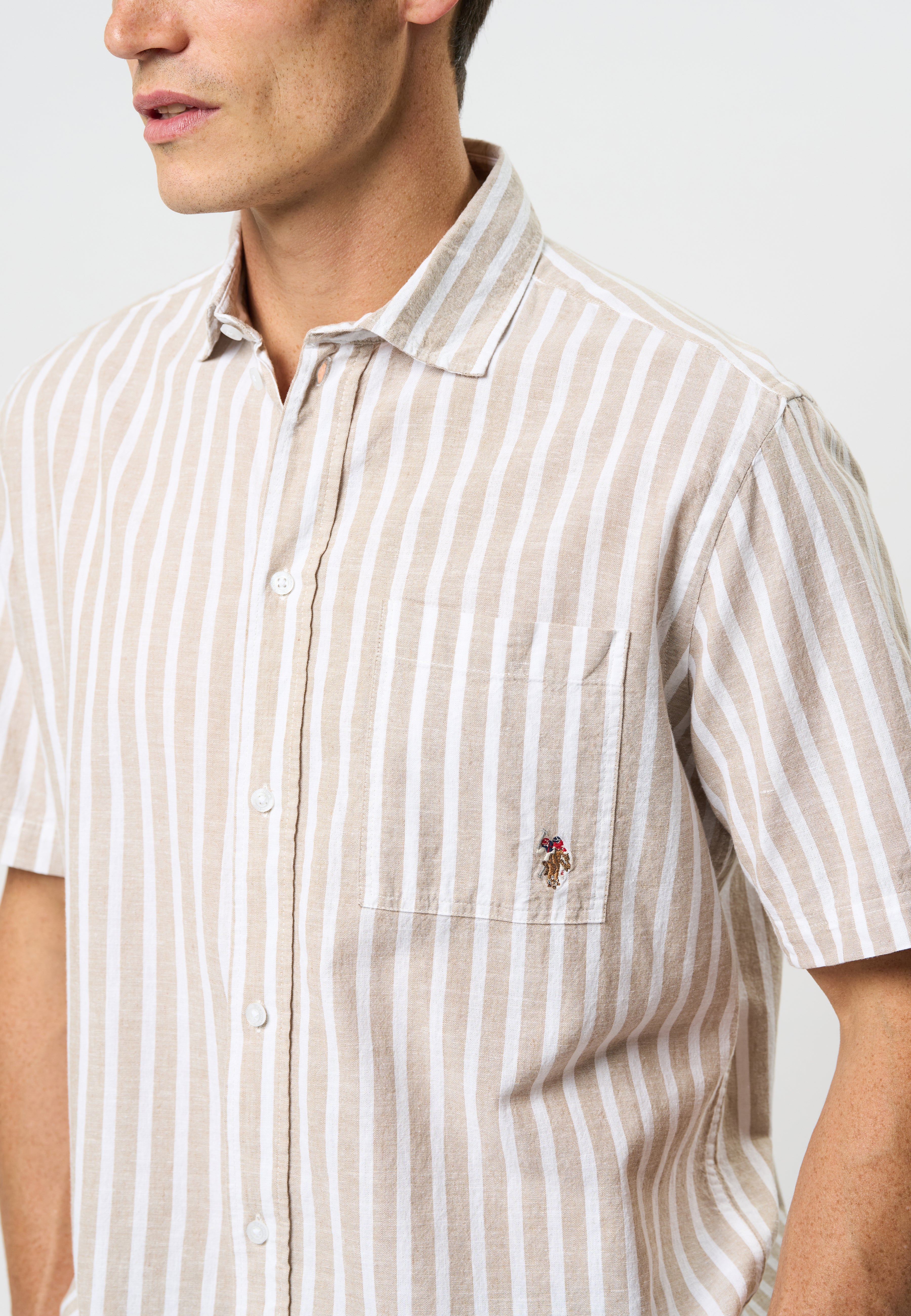Marli er vår stilige skjorte i lin- og bomullsblanding som kombinerer klassisk design med en sommerlig touch. Skjorten er designet med korte ermer, en klassisk krage og en diskret brodert logo på brystlommen for et eksklusivt og avslappet uttrykk. Det stripete mønsteret gjør Marli til et perfekt valg til både hverdag og sommer.