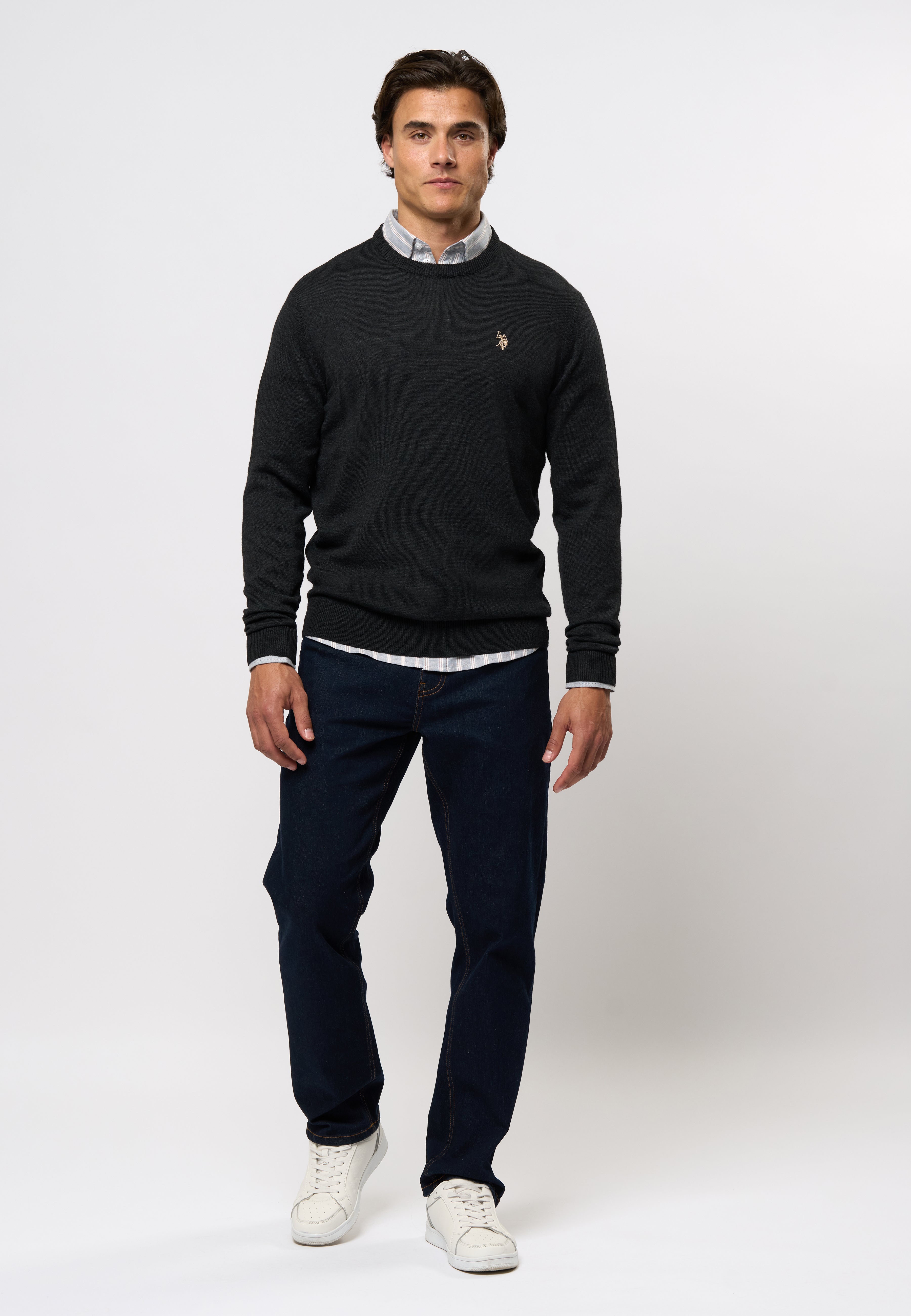 Kent er en klassisk strikkegenser laget av merinoull, som er kjent for sin myke og lette kvalitet. Merinoullen hjelper til med å regulere temperaturen og føles behagelig mot huden, noe som gjør Kent ideell for både kaldere og mildere dager. Skjorten har et tidløst design som kan styles med en skjorte for en formell look eller brukes alene for en casual look. Vår logo er diskret brodert på brystet.