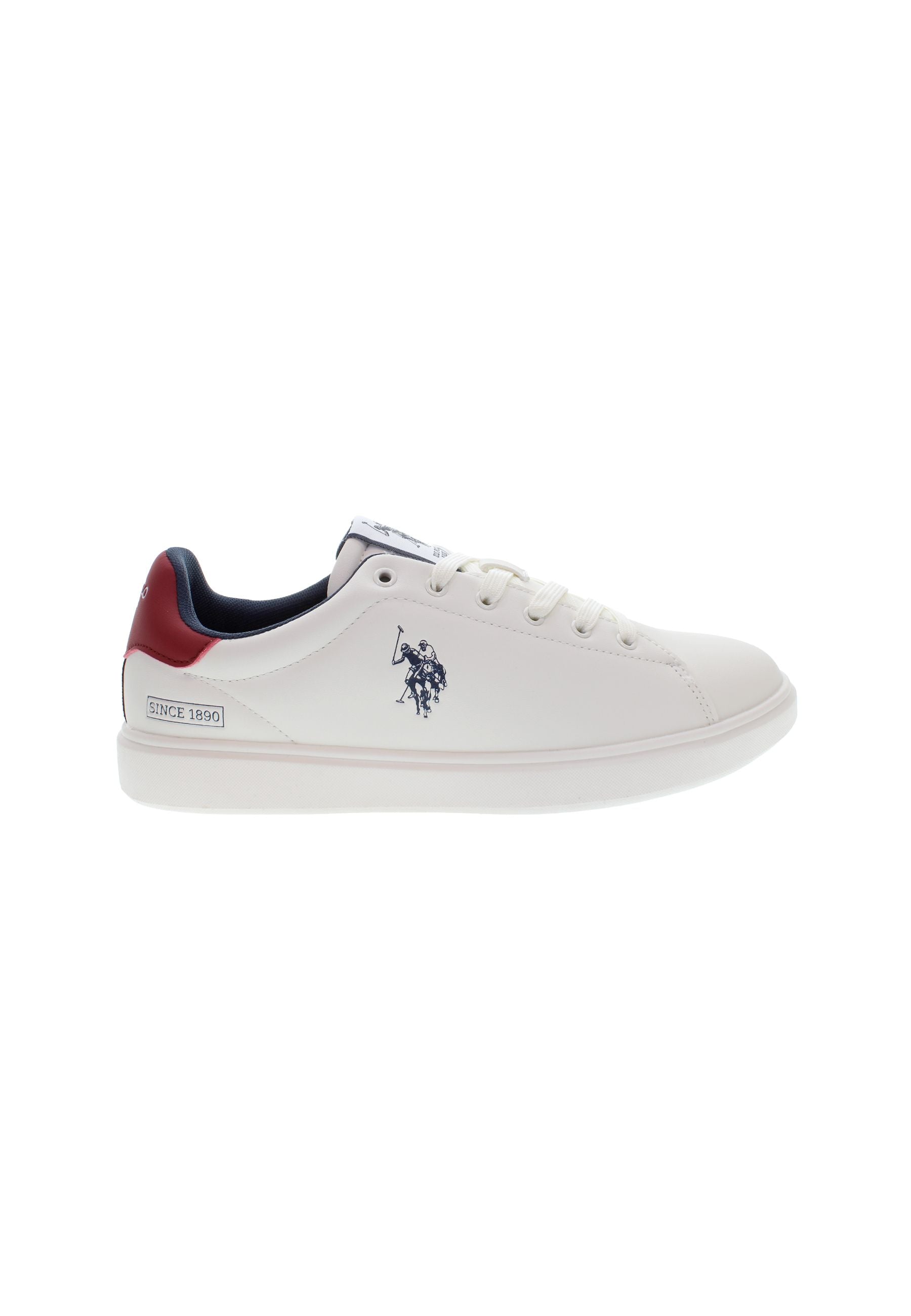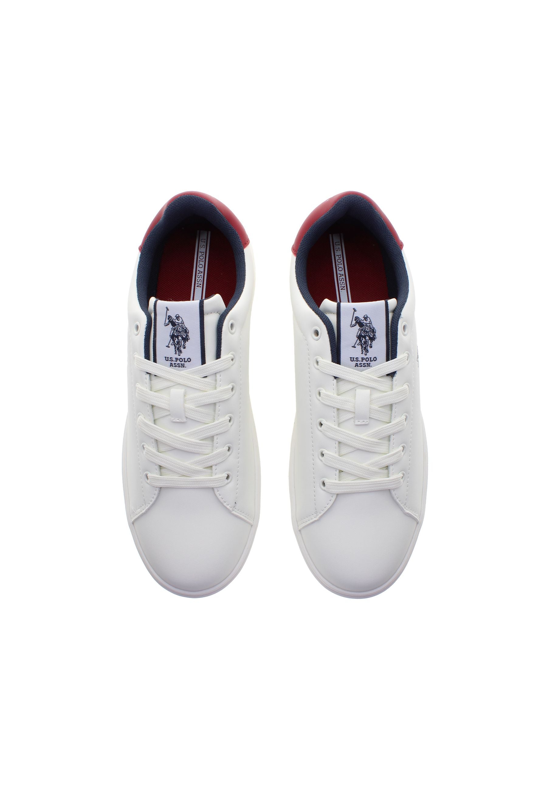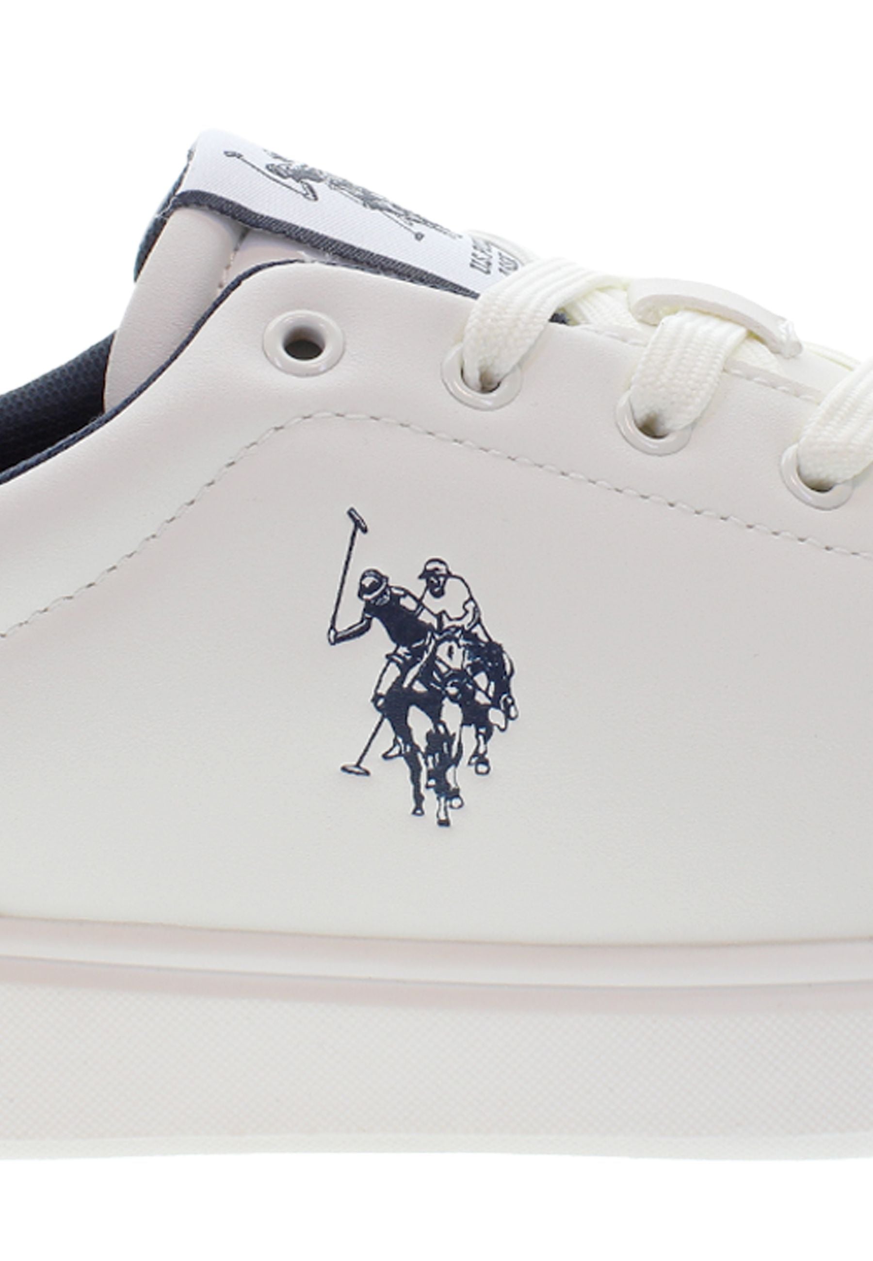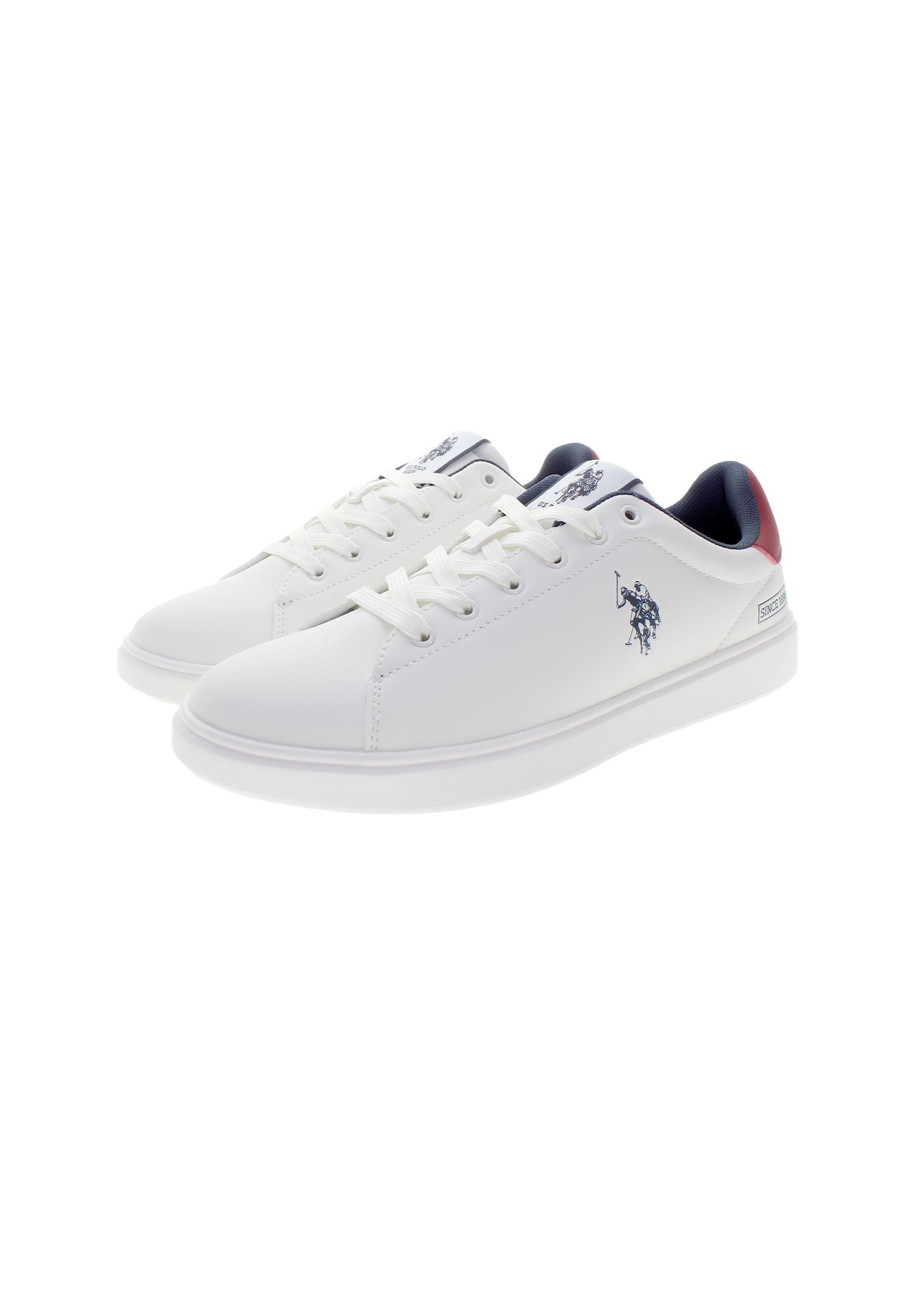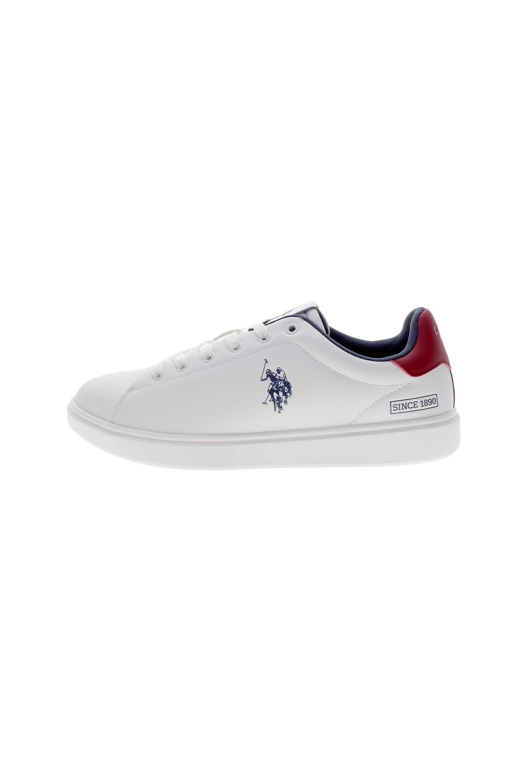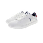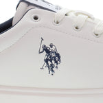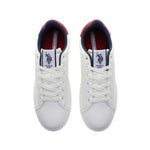 Byron er en hvit sneaker med blå og røde detaljer og et rent, klassisk uttrykk. Den har lett polstring rundt hælen og ankelen, som gir god komfort hele dagen. Skoen er dekorert med et blått U.S. Polo Assn.-logo på siden, og bakpå fullendes looket med en rød hælkappe. Innersålen er enkel og nedtonet med diskret branding. En stilfull sneaker som fungerer til både hverdag og fritid.