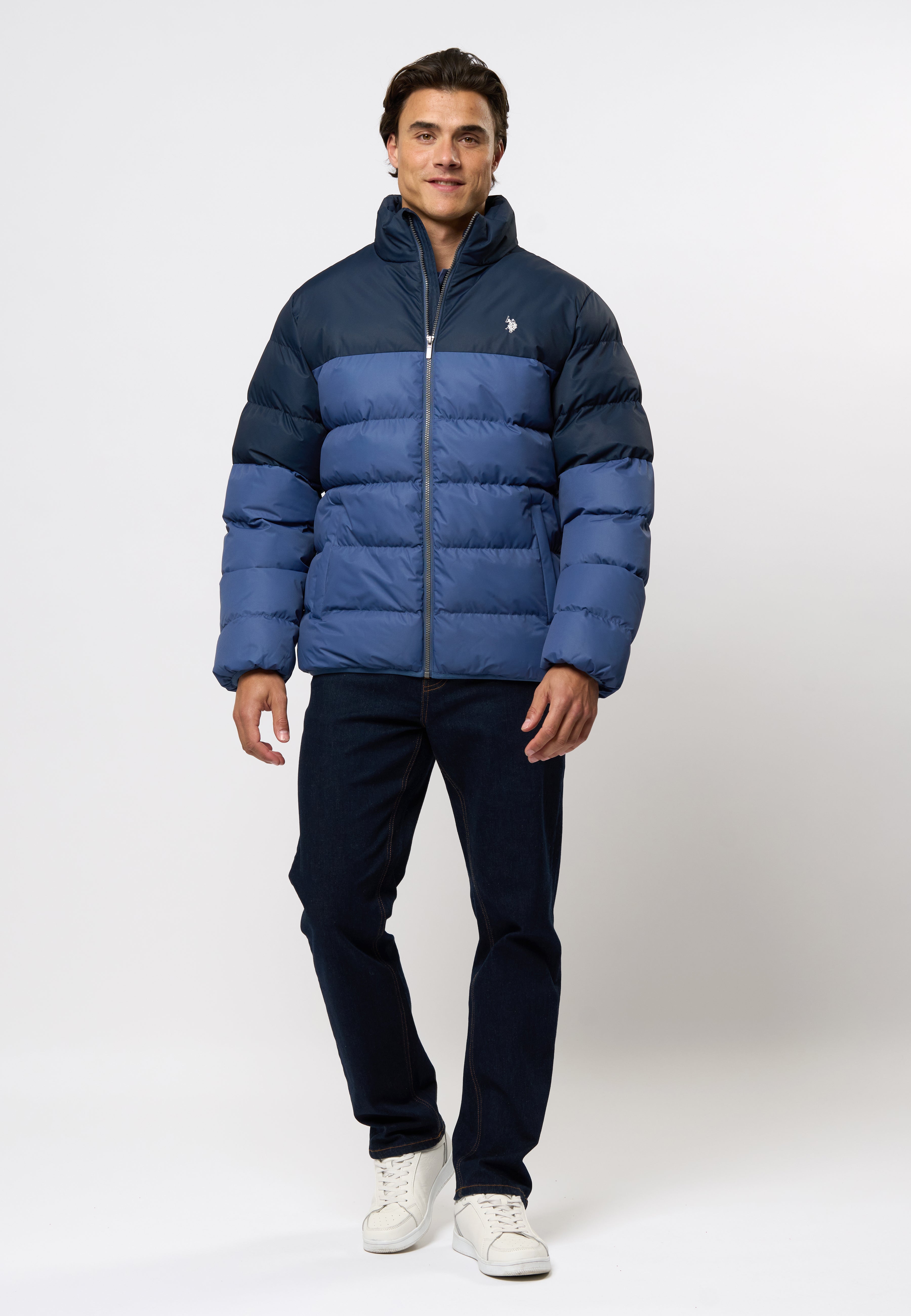 Aleks er en varm og funksjonell vinterjakke med sporty fargeskala og praktiske detaljer. Det brede vatterte designet gir jakken et voluminøst, men rent utseende, mens det todelte fargepanelet gir et moderne preg. Jakken har høy krage, sidelommer med glidelås og innerlomme for oppbevaring. Perfekt for kalde dager når både komfort og stil er viktig.