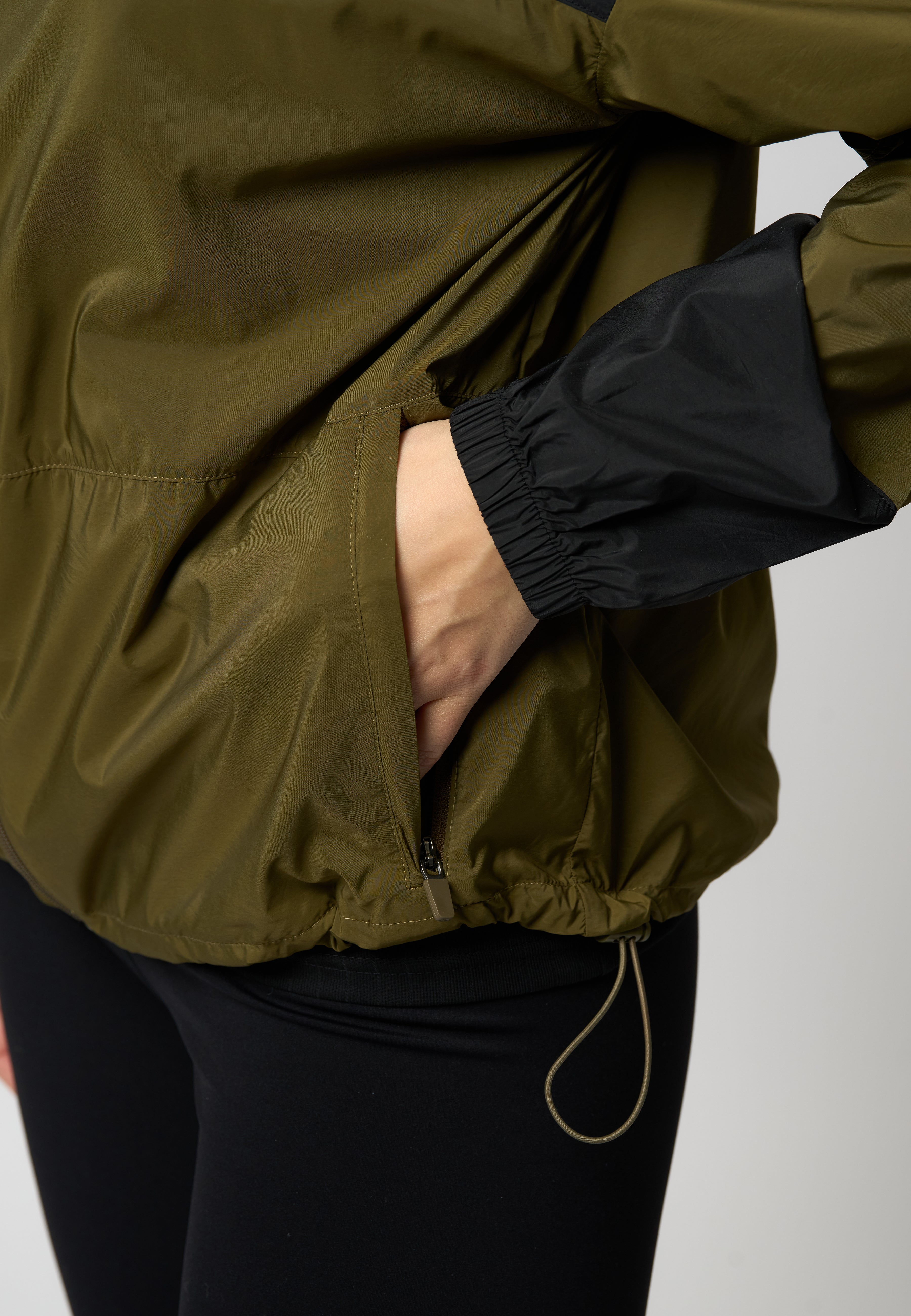 • Praktiske lommer, hette og snøring i midjen