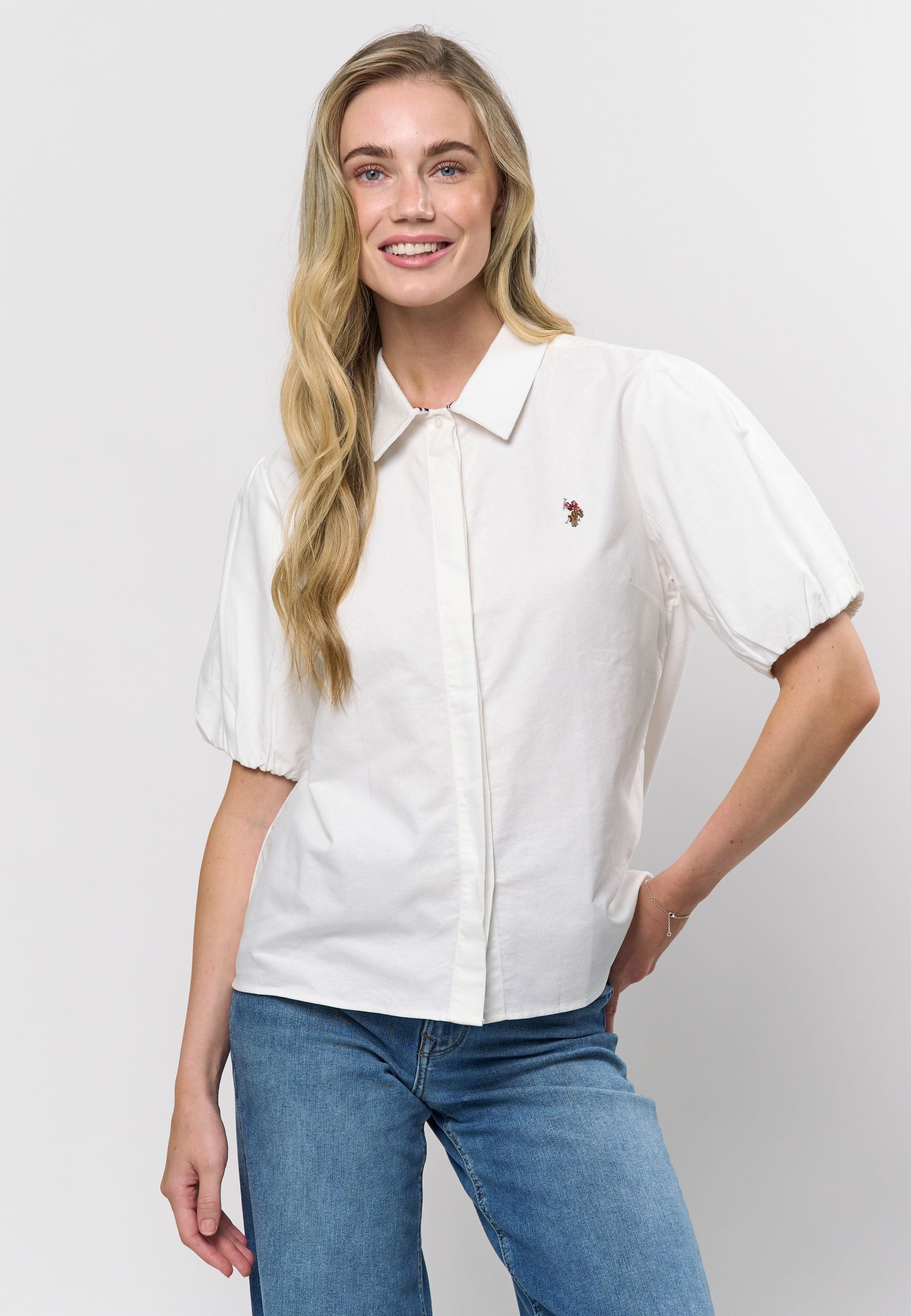 - Feminin skjorte med korte puffermer