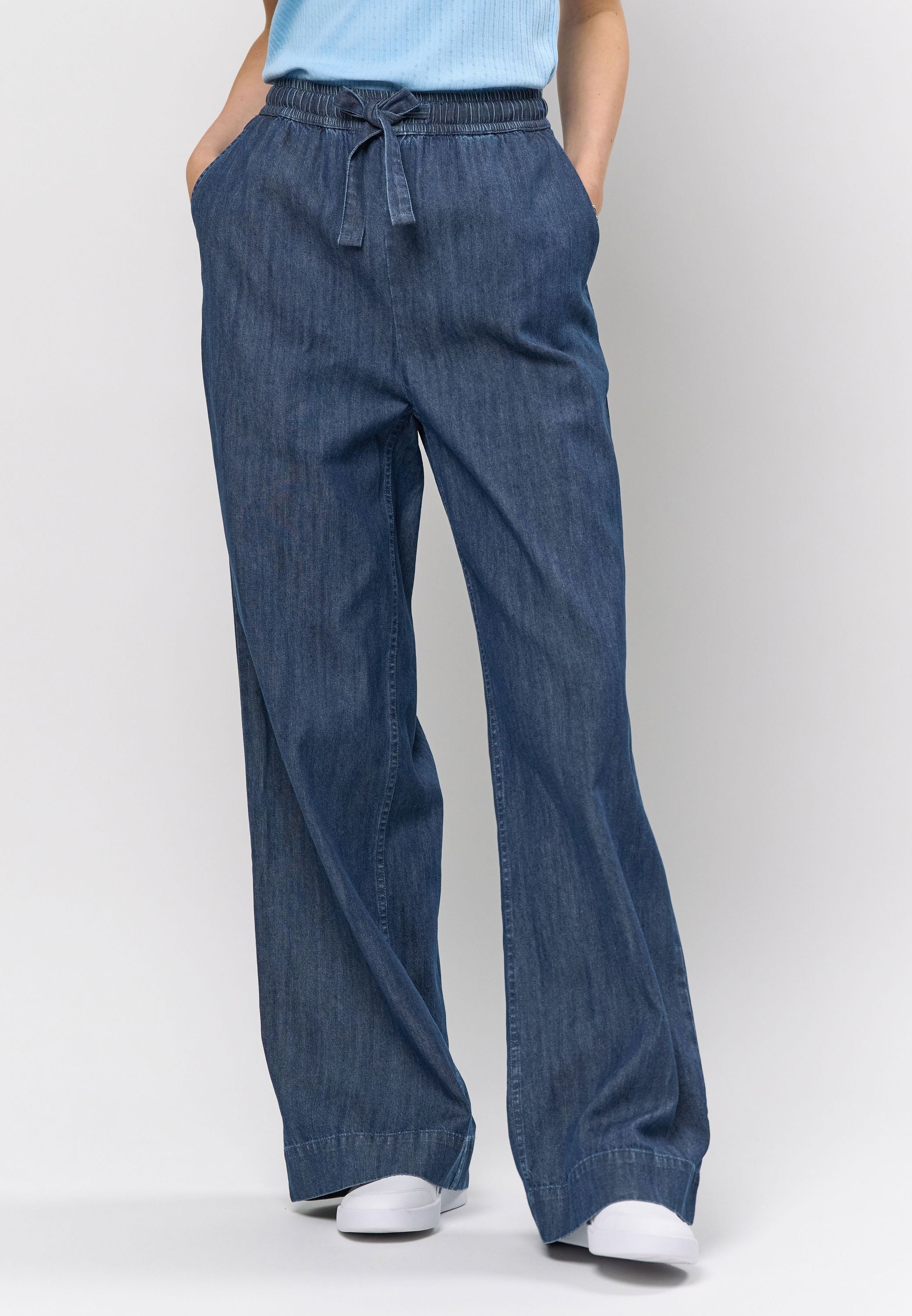 - Avslappet passform med brede ben